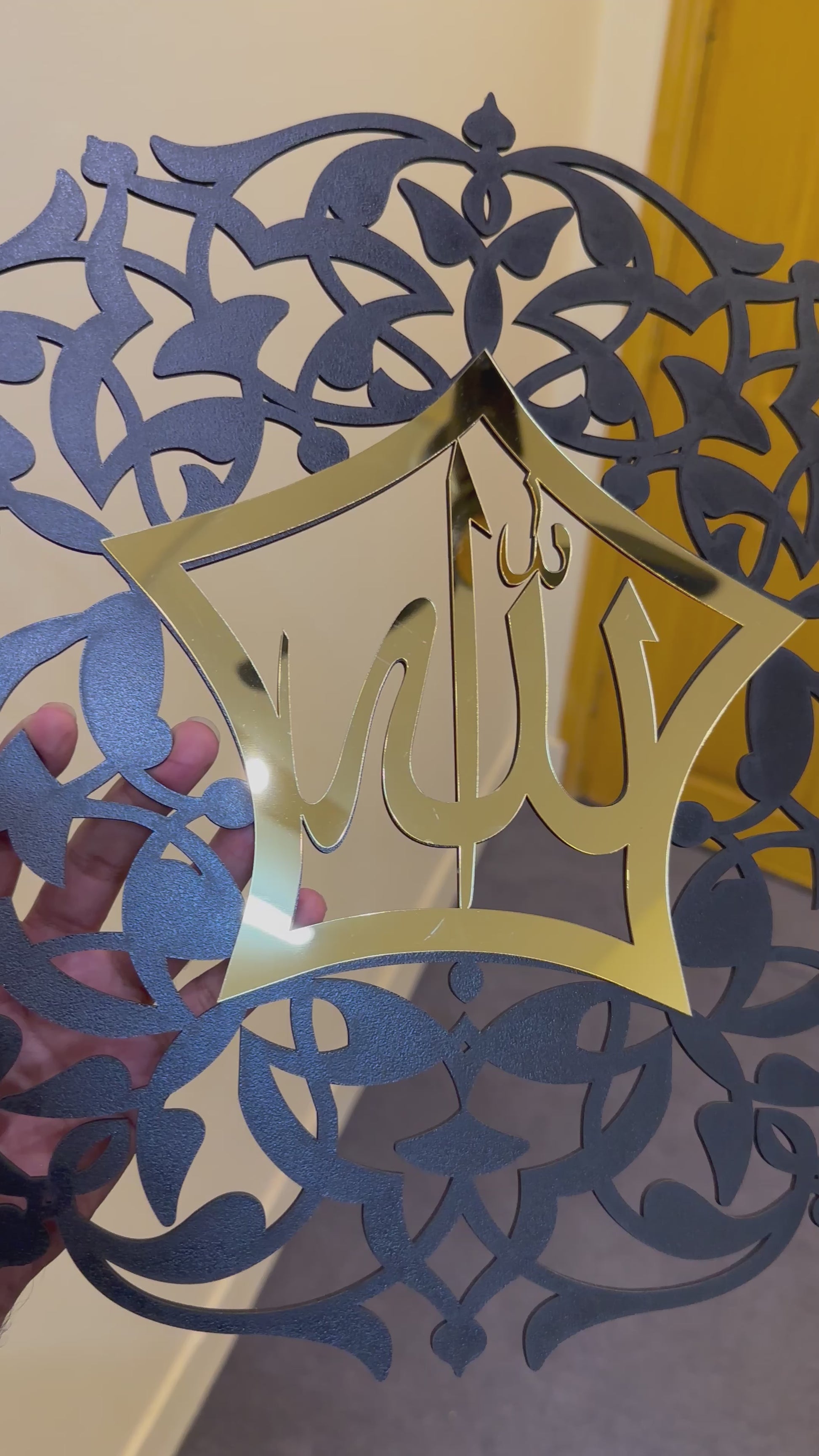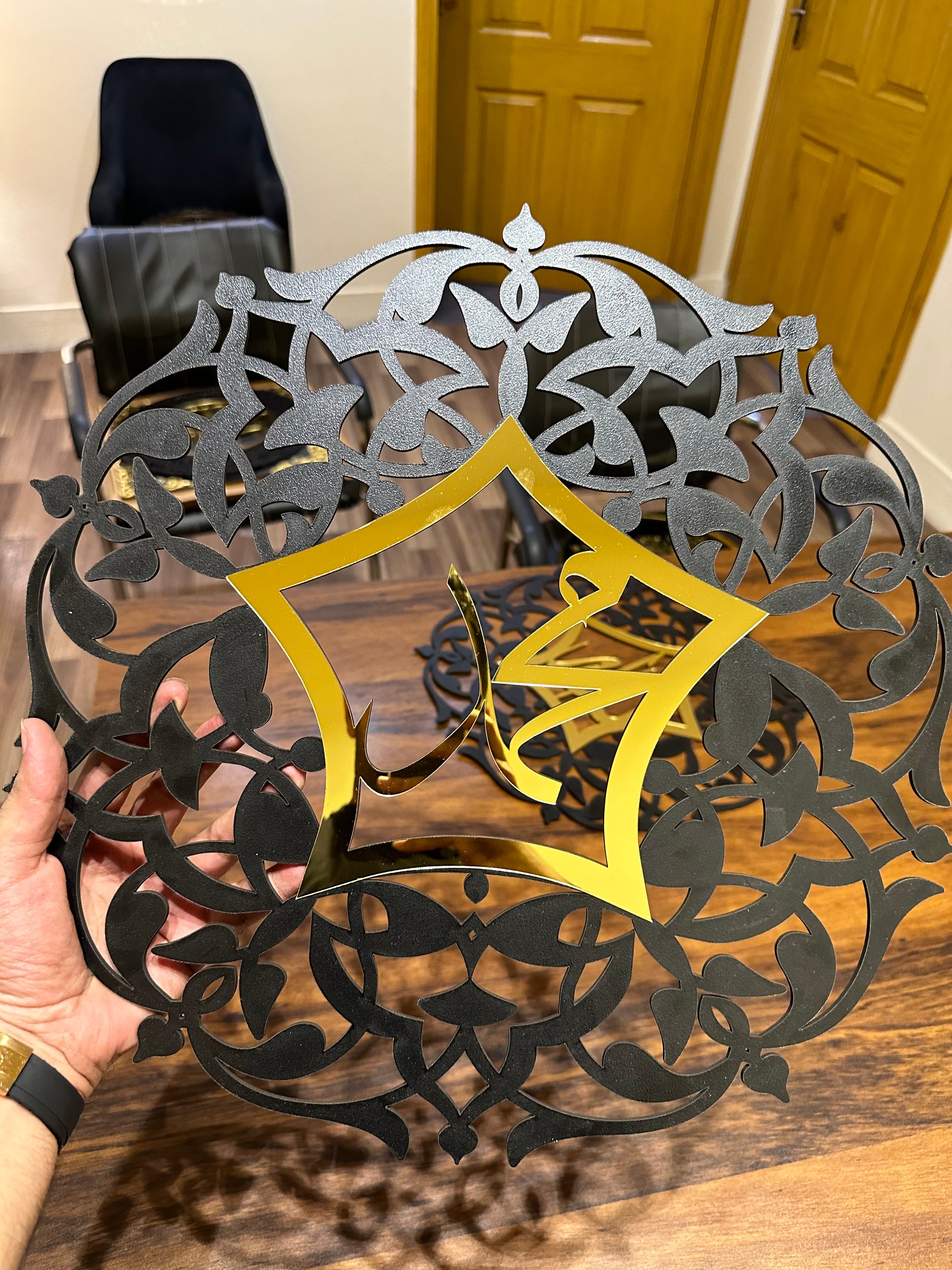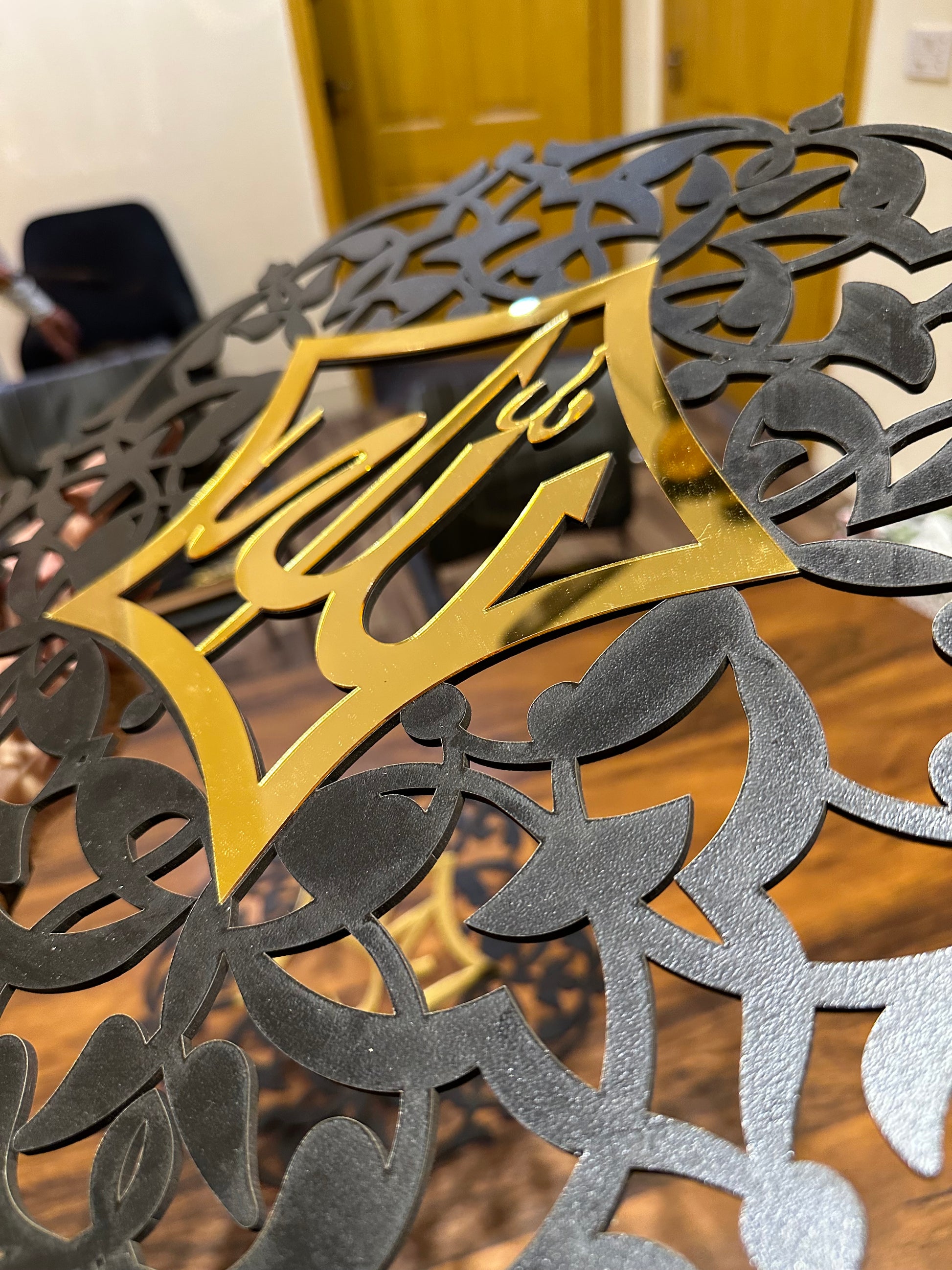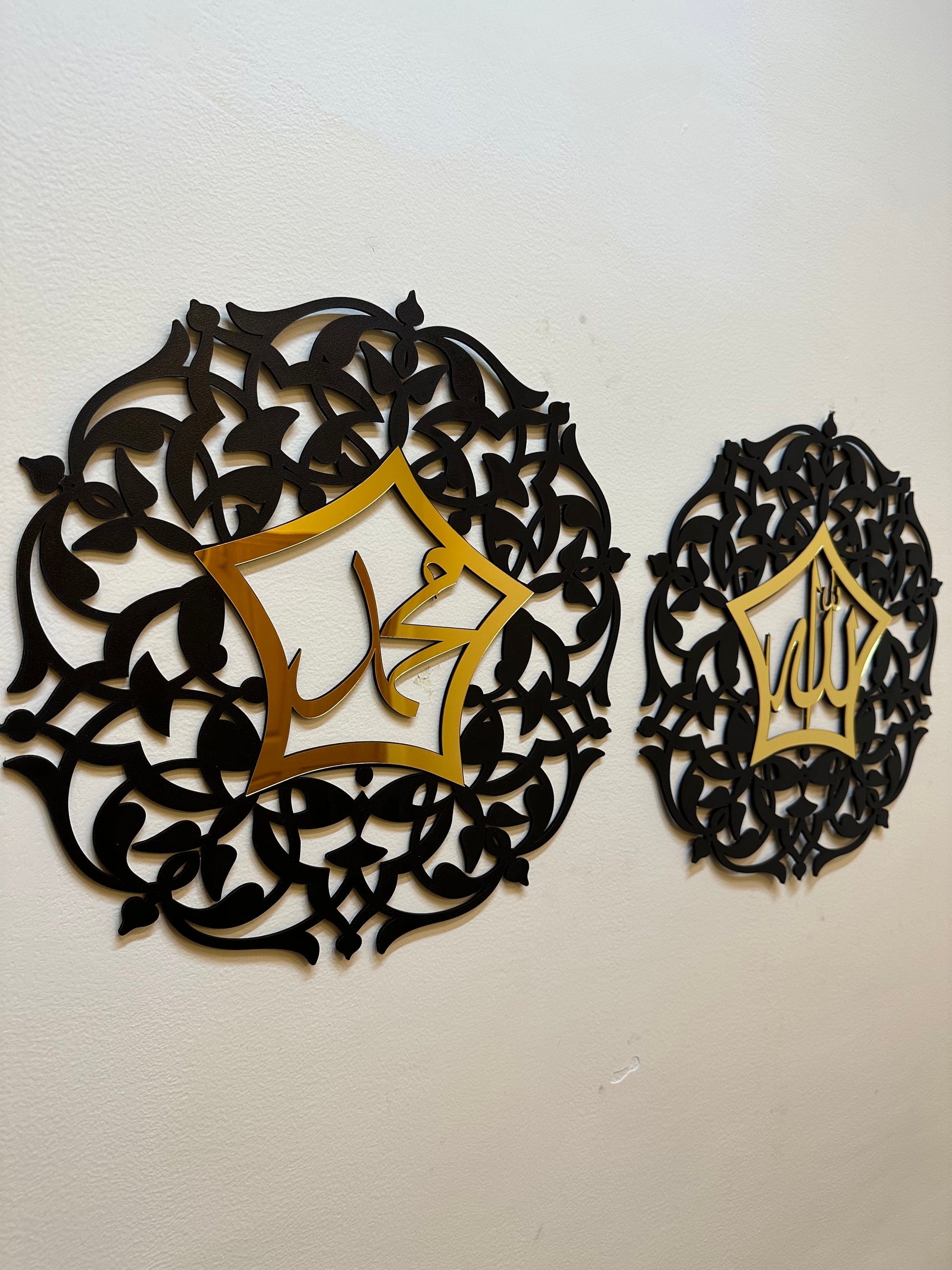 "Allah Muhammad Flowers" Islamic frames are beautifully crafted pieces of art that combine calligraphy of the names "Allah" and "Muhammad" with intricate floral designs. These frames are popular decorative items in Islamic art and home decor, exuding a sense of spirituality and elegance. Here's a description of these frames: