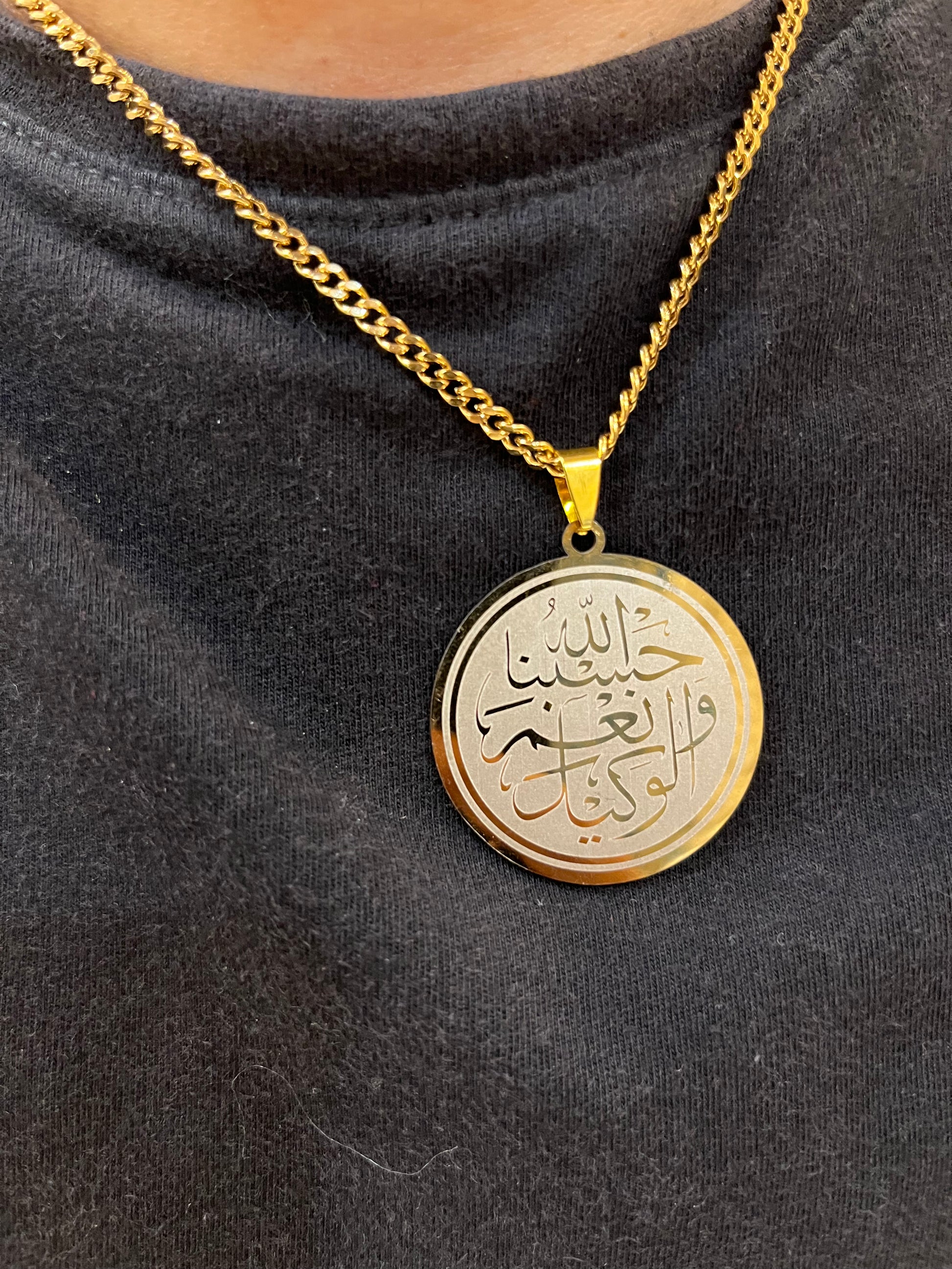 Ayatul Kursi & Hasbiyallahu Wa Nimal Wakeel Necklace Stainless Steel Quran Pendant