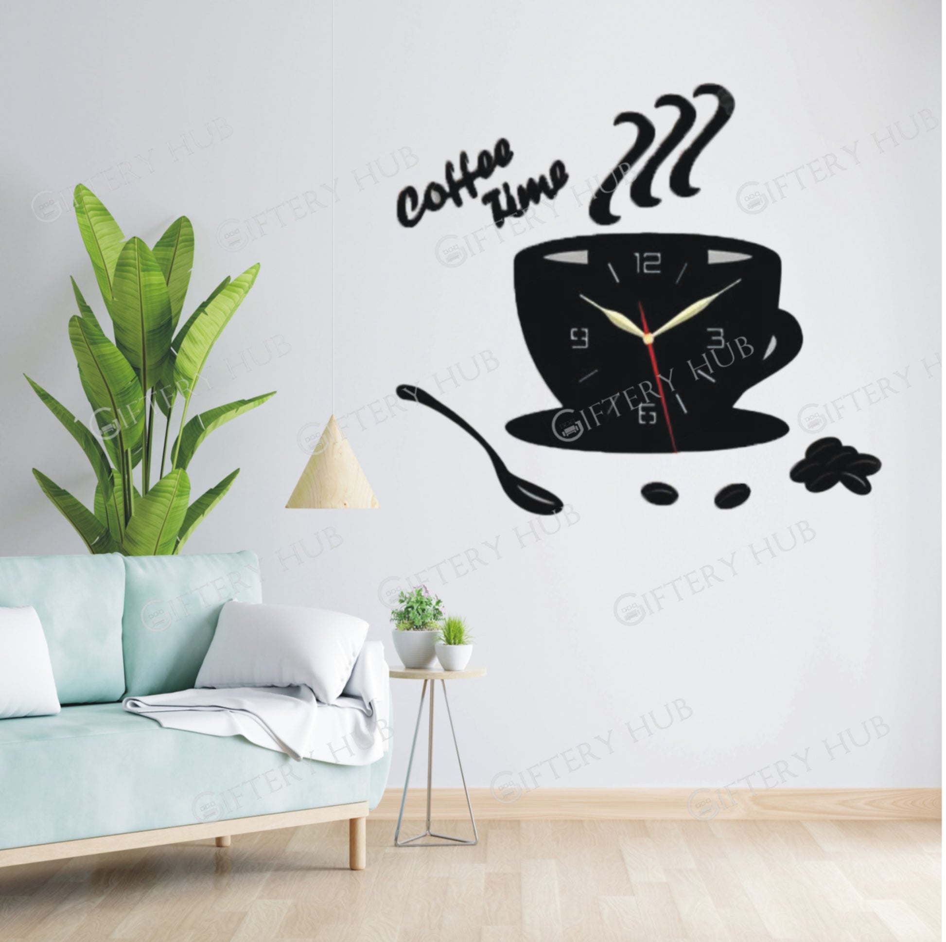 Coffee Time Kitchen Special 3D Silent Wooden Wall Clock - WC-048