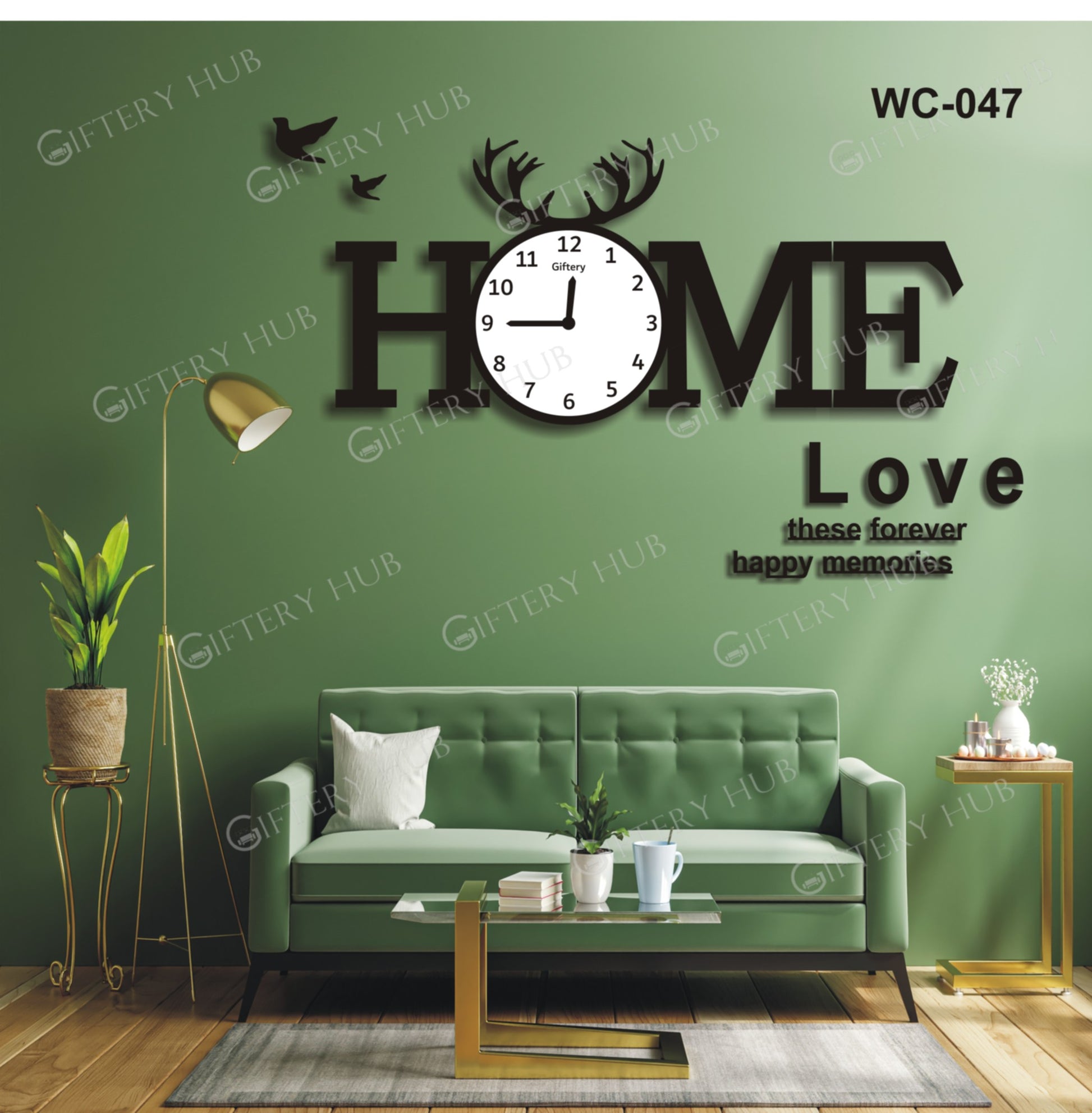 Home Love with Birds Wooden Wall Clock for Home and Offices - WC-047