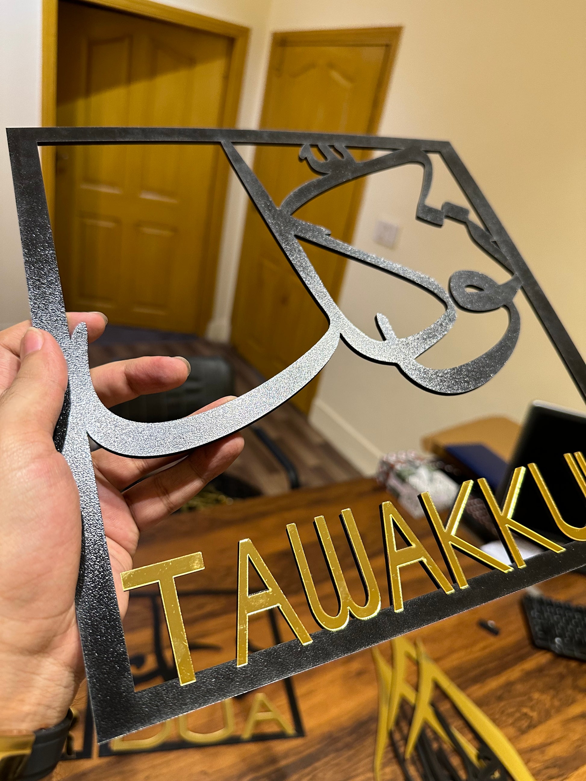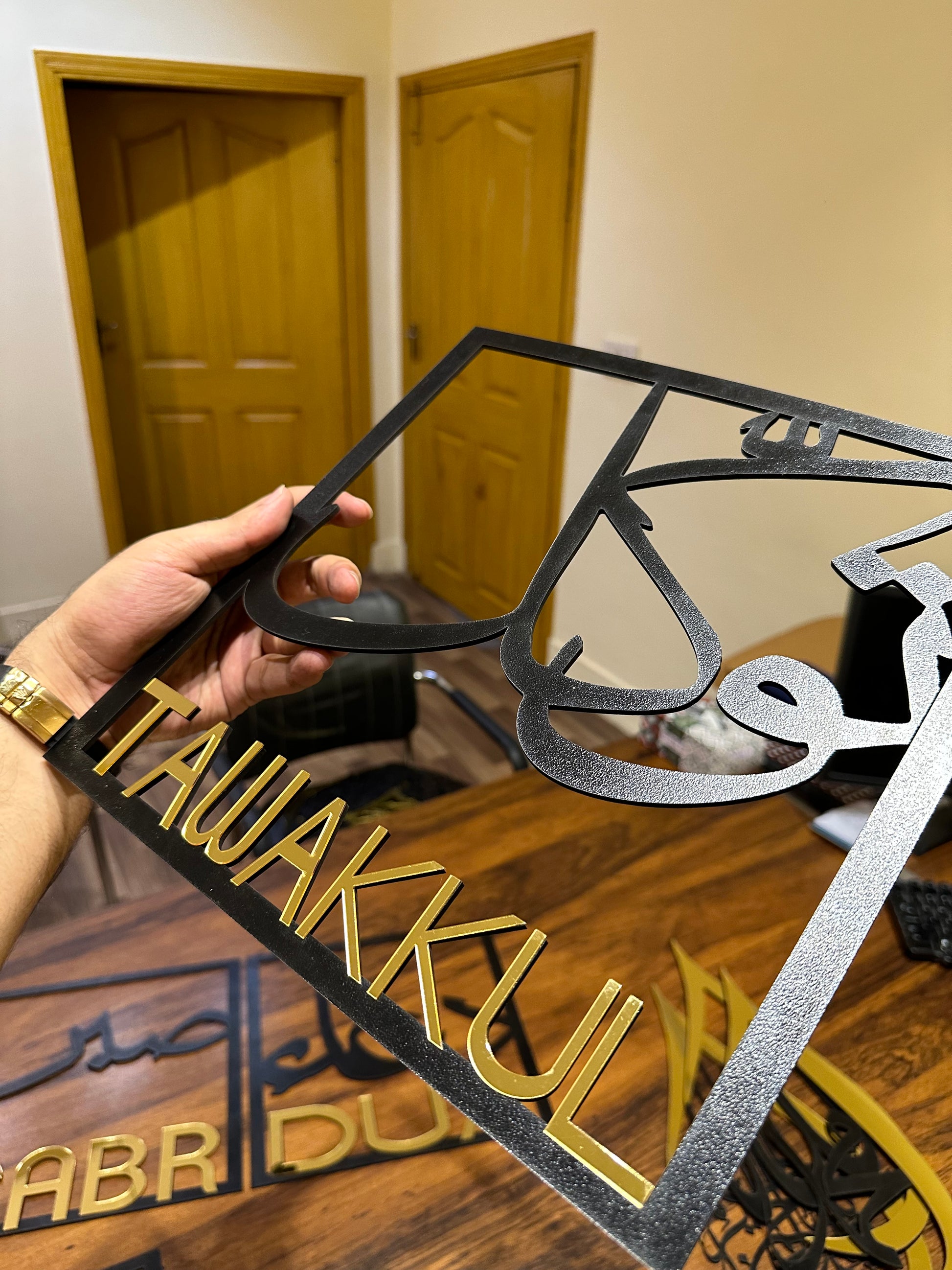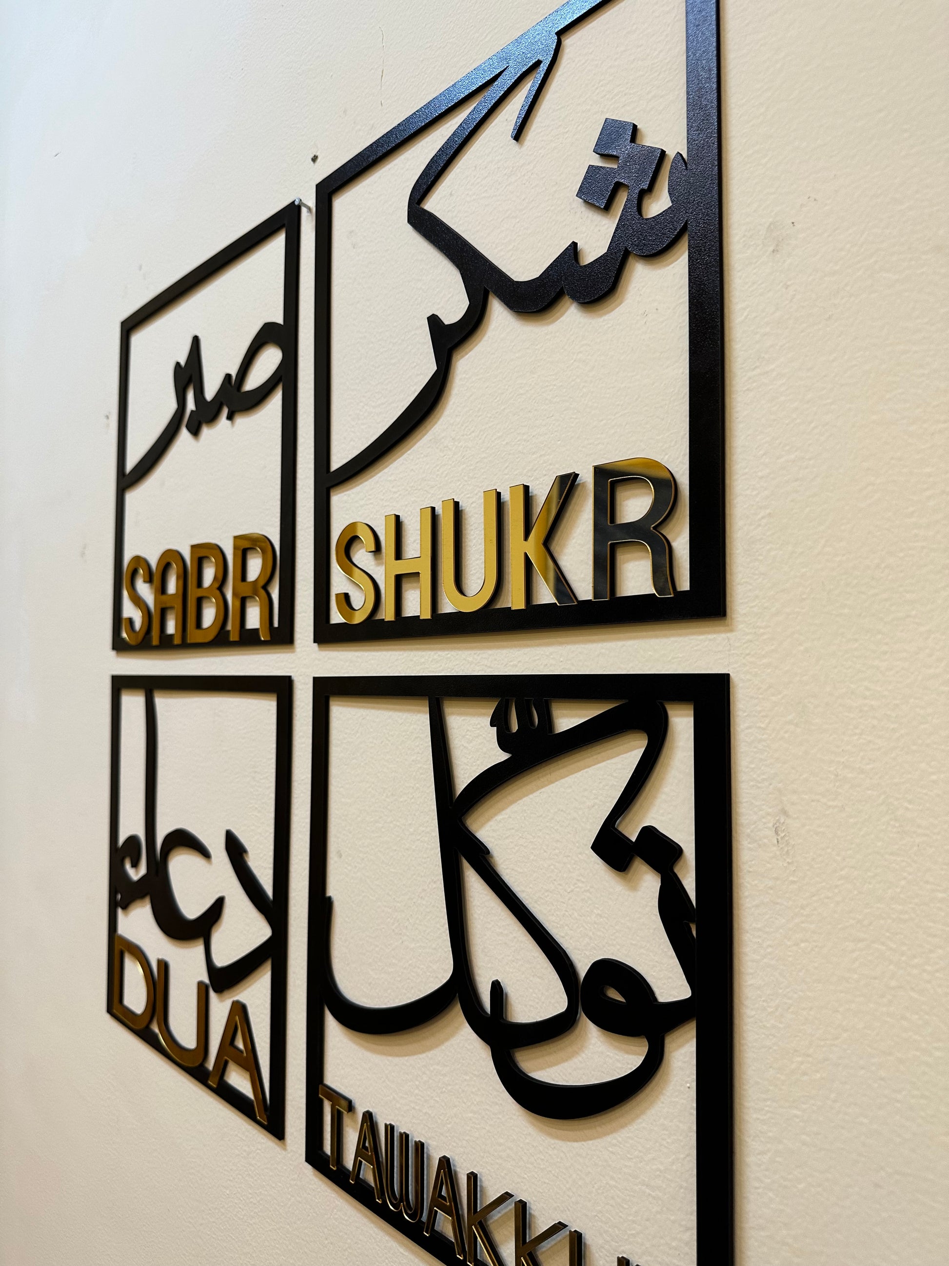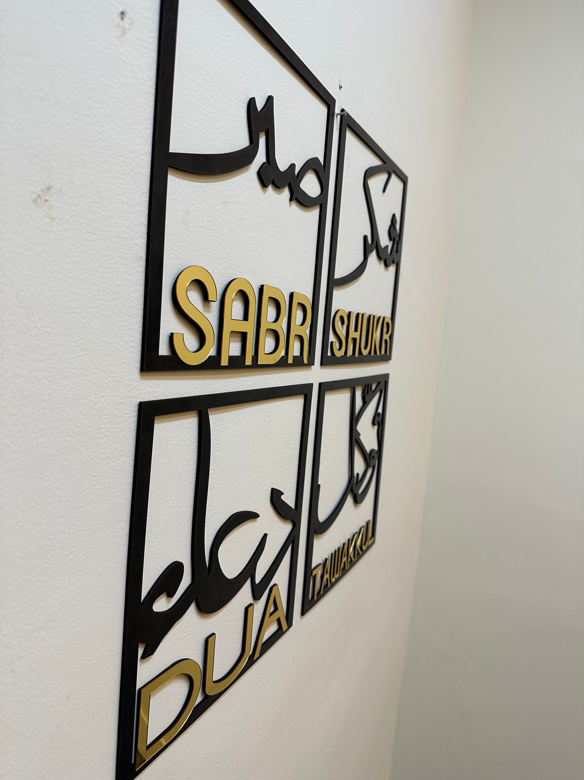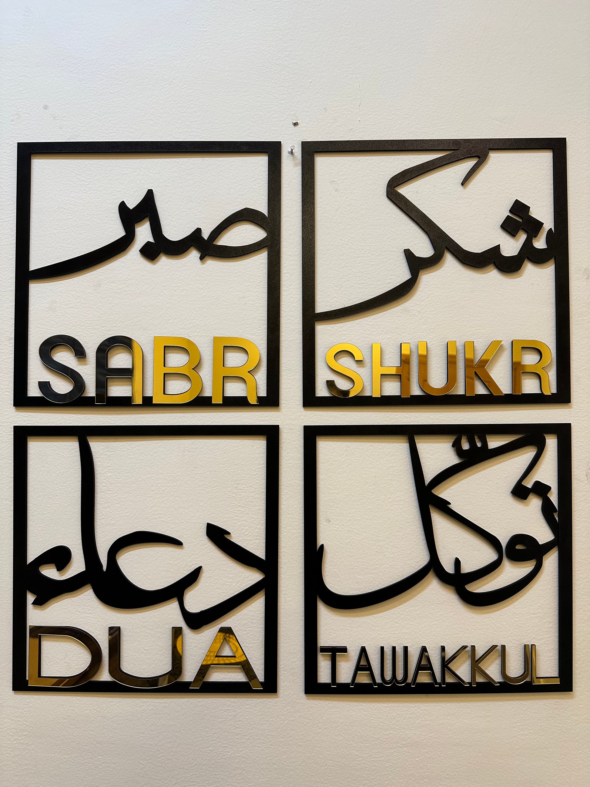 Add a touch of inspiration and positivity to your living space with our beautiful wall frame featuring the powerful words of "sabar" (patience), "shukar" (gratitude), "tawal" (tolerance), and "dua" (prayer).