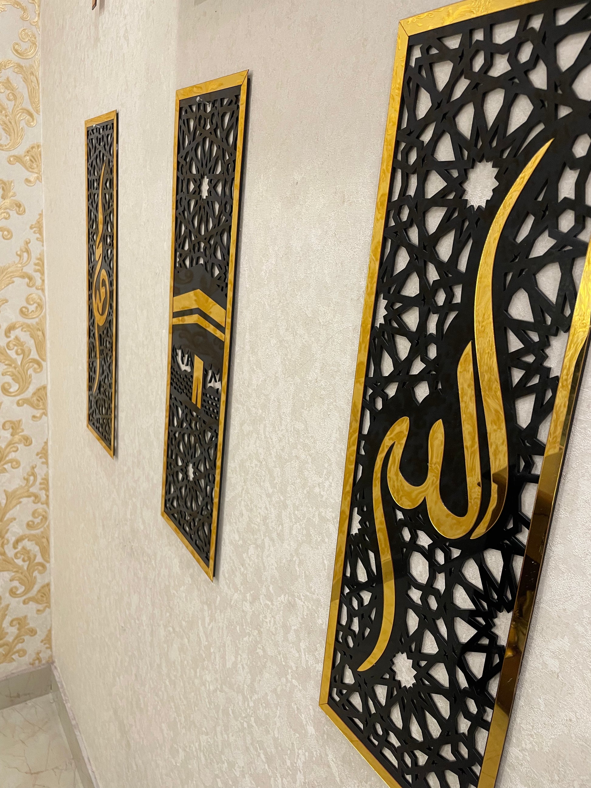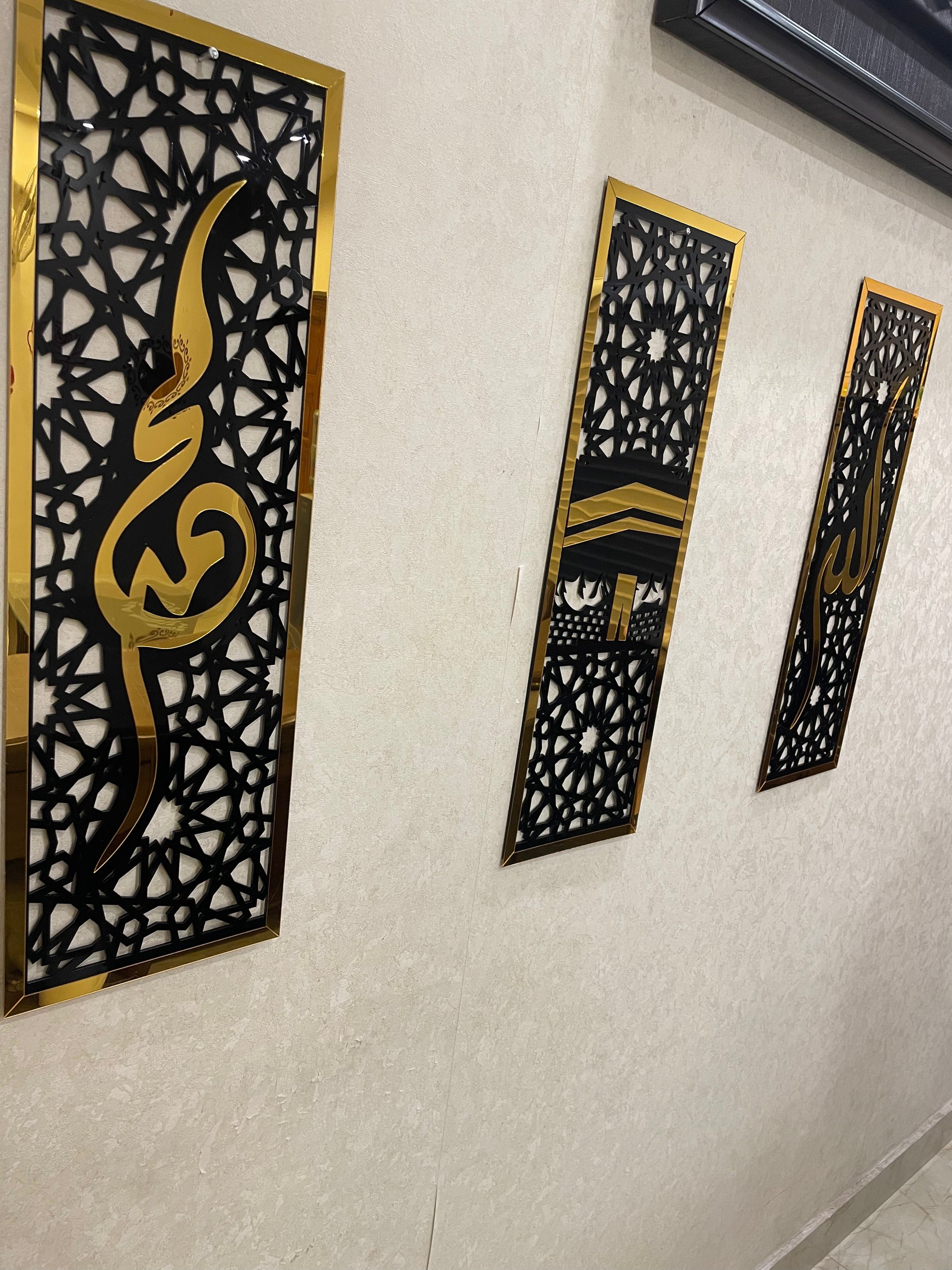 - Set of 3 Frames: Includes Allah, Muhammad (SAW), and the Kaaba for a complete Islamic decor set.